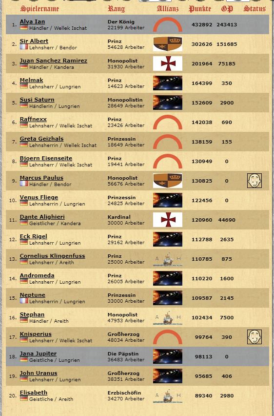 meiste Punkte: Alva Ian [ ] 432892 (davon 243413 aus Gesellschaftspunkten)