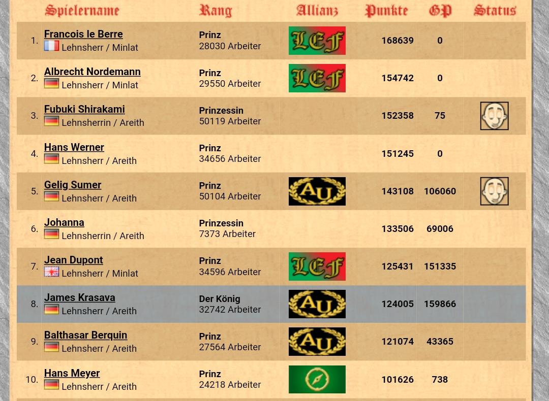 Dieser Wechsel hatte allerdings fatale Folgen. Nicht nur, dass die Stadt Krasivo dadurch einige tausend Einwohner verloren hatte, vielmehr ist der Areither Union damit der Sieg in dieser Runde durch die Lappen gegangen. Diese Schwäche nutzte Sankt Pauli bzw. die Allianz der Weiberwirtschaft aus und schob sich damit an den Platz an der Sonne.
