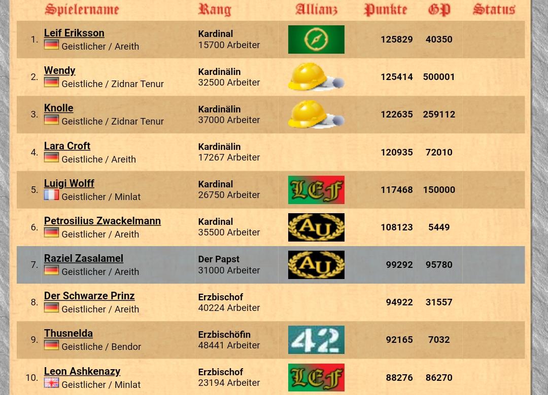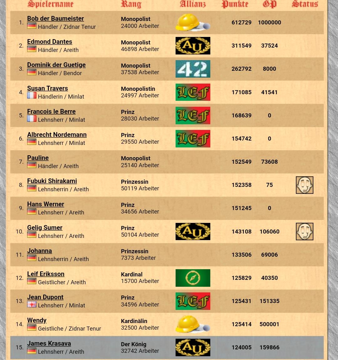größte Allianz: Areither Union von Edmond Dantes (14 Mitglieder)